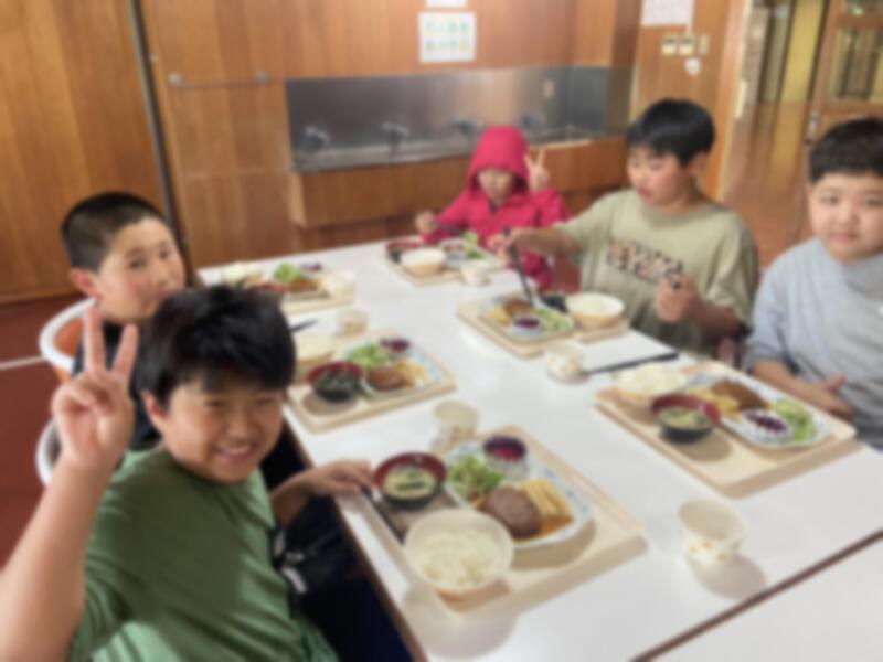 夕食は、みんな大好きハンバーグでした。とてもおいしくて、何杯もごはんをおかわりする人がたくさんいました。