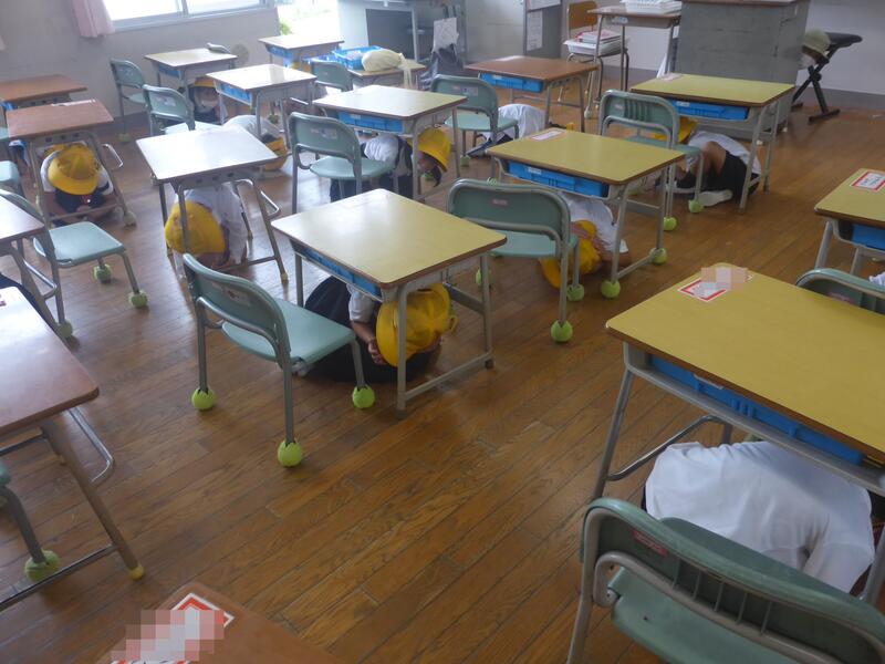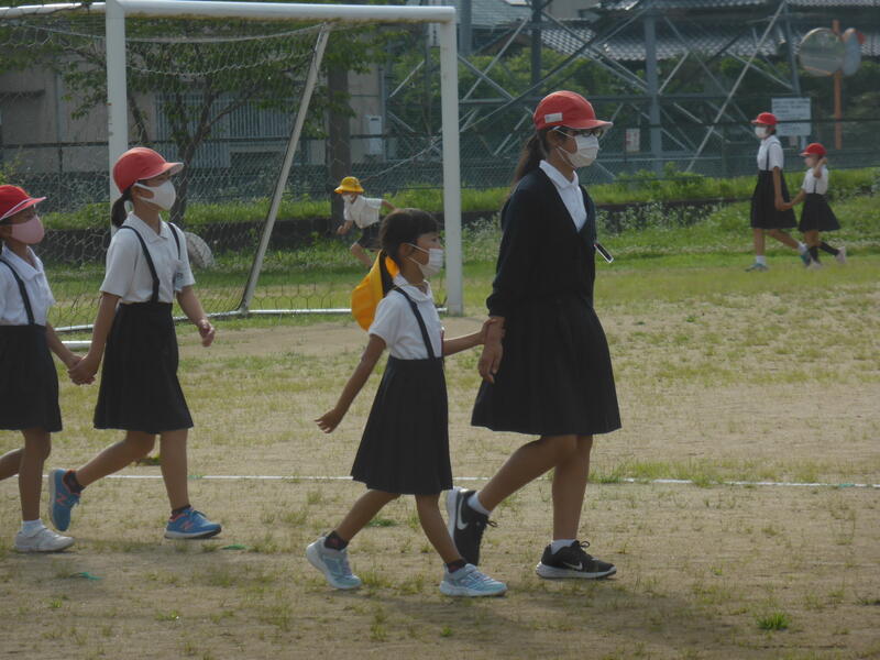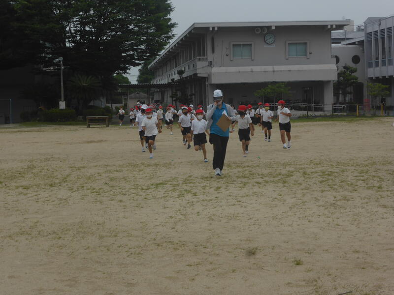 10日、避難訓練を実施しました。1年生は小学校で初めての経験です。先生の話をしっかり聞いて行動できました。
