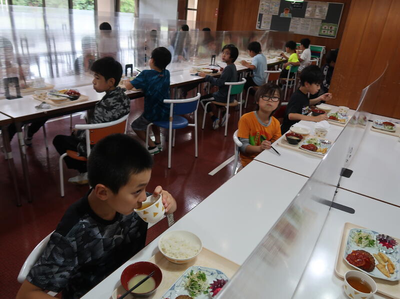 夕食はみんなでハンバーグを食べました。とてもおいしくて、何度もおかわりをする児童がたくさんいました。