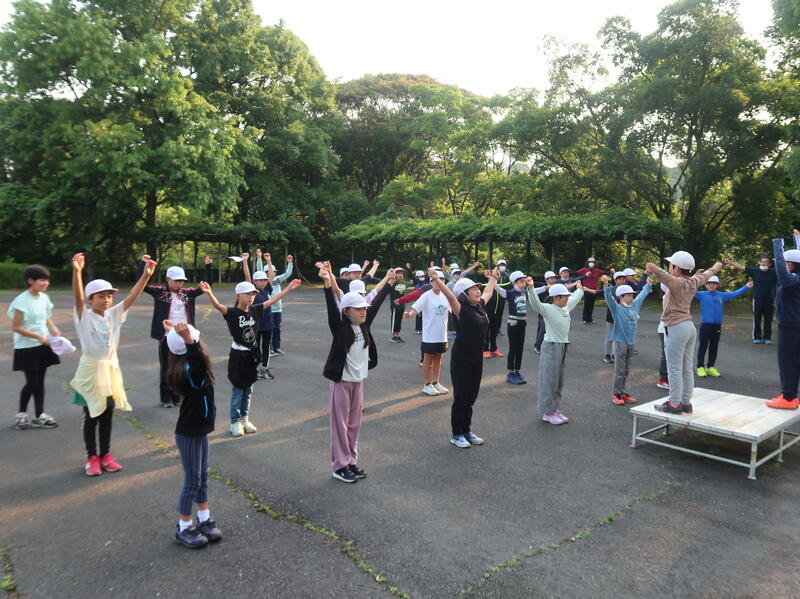 二日目の朝は、6時半に起きました。みんなで集いの広場に集まり、ラジオ体操を行いました。