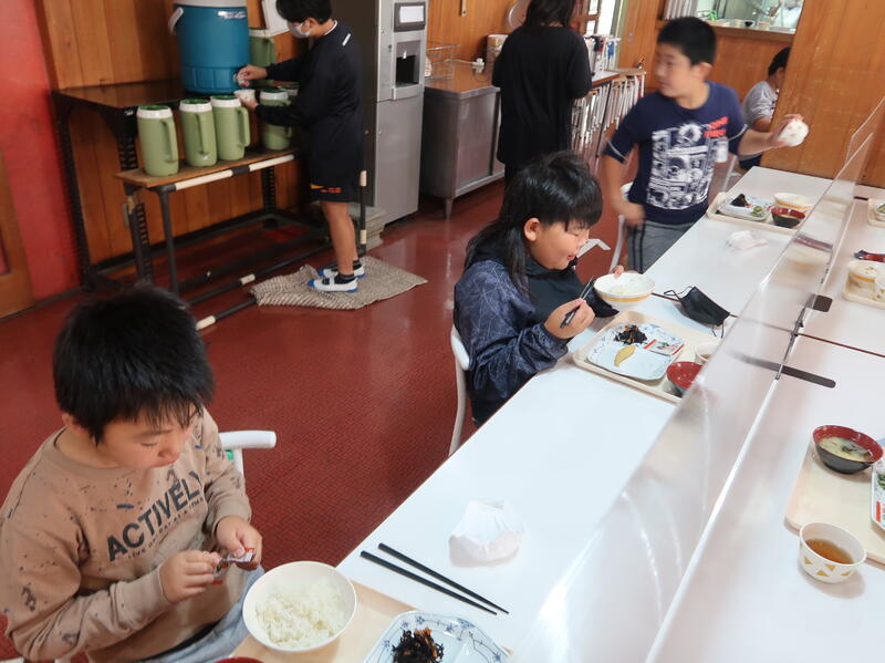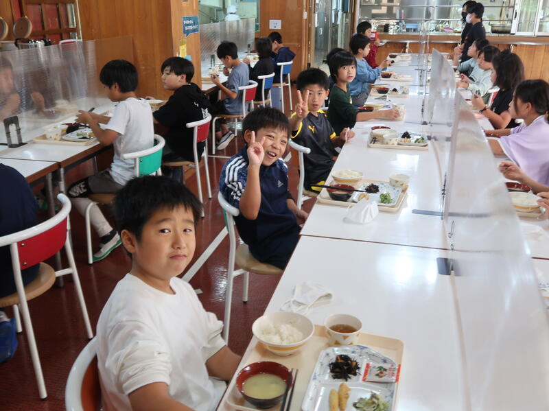 朝から魚の天ぷらとみそ汁をいただきました。午前中の活動であるコンパスゲームに向けて、たくさんおかわりをしてエネルギーを蓄えています。