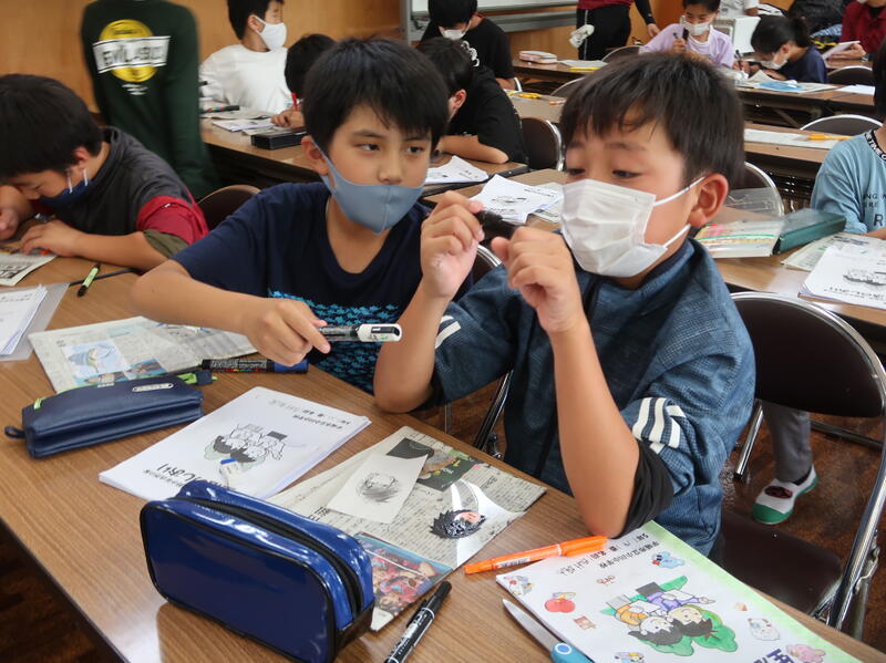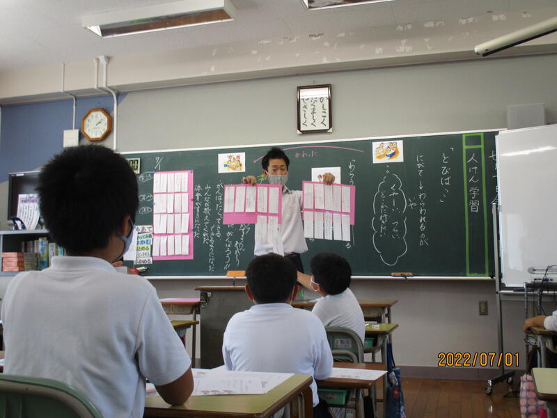 2年生の研究授業(道徳) 気持ちを表す道具を使って、人物の気持ちと重ね合わせて深く考えていました。