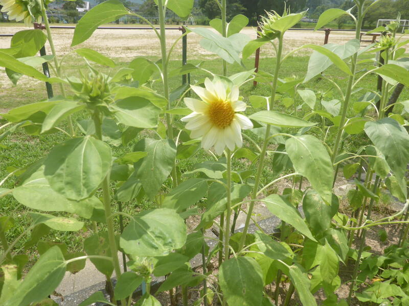 地域の方からいただいた白いヒマワリ。もうすぐ見ごろです!立ち止まって見てほしいな。