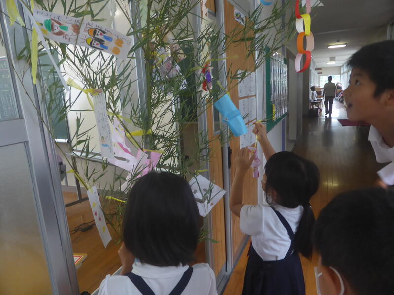 星に願いを。「○○がほしい」だけでなく、「コロナがなくなりますように」と書く1年生もいました。