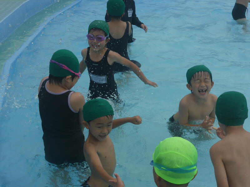 梅雨に入り、天候、気温や水温を考慮してプール開きを行いました。みんなの歓声が聞こえてきます。