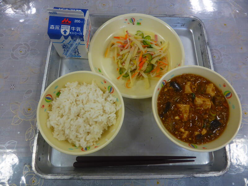 ナス入りマーボー豆腐、しゃきしゃきサラダです。