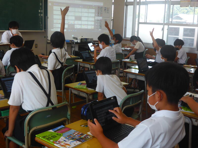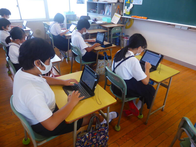 夏休み明け2日目。各学級でタブレット活用を積極的に進めています。本日も使用する学級が多く見られました。一部を紹介します。