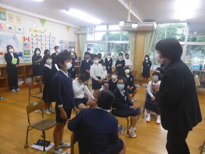 教育委員の先生から「幸せな気持ちで見て回った」と、子供の姿はもちろん、掲示物や屋内外の環境をほめていただきました。