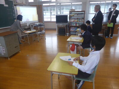 25日月曜日、宇城市教育委員会から教育長をはじめ、13人の関係者の方が来校され、授業の様子や学校環境を見られました。