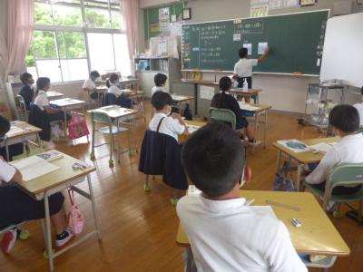 宇城市教育委員会の学校教育審議員の先生が5・6年の算数授業を参観されました。両学年とも課題を最後まで集中して追い求める姿に感心されました。