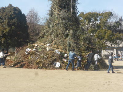 年末の竹の切り出し、前日の準備、さらに当日は早朝からの最終準備と、PTA会員の皆様には大変お世話になりました。5,6年生の有志も竹の運び出しをがんばりました。たくさんの方の御協力により安全に実施することができました。