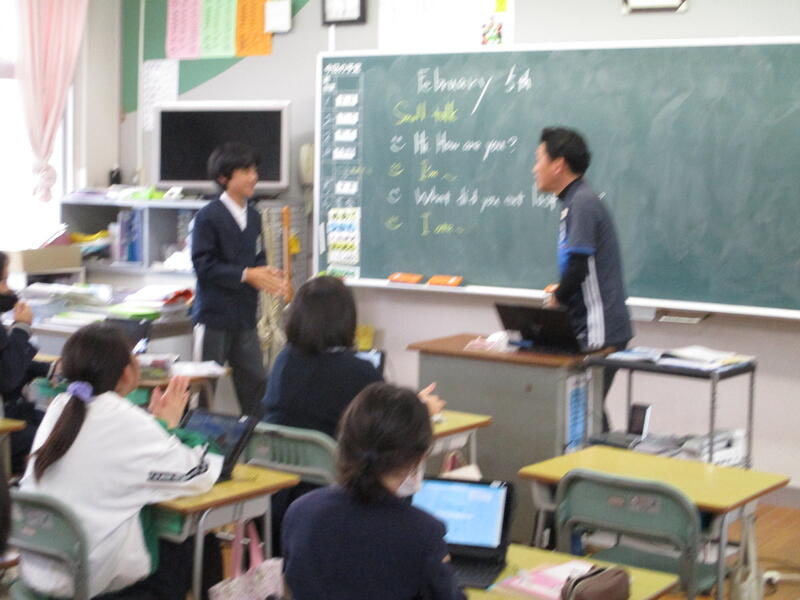 6年生では、外国語の学習で『Let's think about our foods』という題材で学習に取り組みました。英語を使って自分たちの食事や熊本県産の食材について調べたり、交流したりしています。この日は、「昨日の夕食には何を食べましたか。」と言う題材で英語での会話を楽しみました。子どもたちがより外国語に親しめるように今後も取組を進めていきたいです。