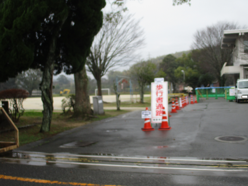 3月4日から給食室仮設工事が開始されました。工事に伴い正門入口が狭くなり、来校者は仮の歩道を歩いていただくことになります。