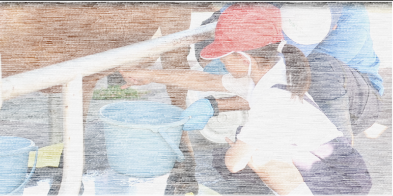 入場して最初の活動は、たくさんの動物とふれあいました。ヤギにそうっと触ってみたりモルモットに餌をあげたりするなど、なかよく過ごすことができました。