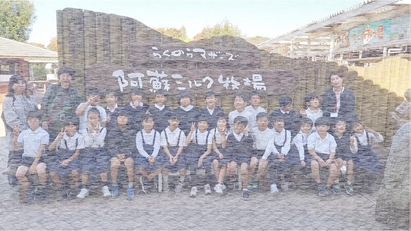 低学年は1・2年生合同で、阿蘇ミルク牧場に見学旅行に行きました。たくさんの動物に出会えることを楽しみにしながら出発しました。