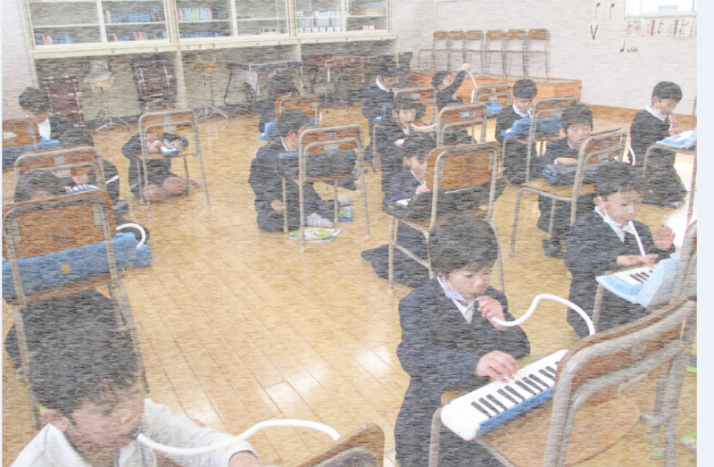 2年生の音楽では、発表会に向けて鍵盤ハーモニカの練習をしていました。先生から鍵盤ハーモニカにシールを貼ってもらい、小さな指で押さえる鍵盤を確認したりピアノのリズムに合わて弾いたり、楽しく繰り返していました。できた時の笑顔をお見せしたかったです。