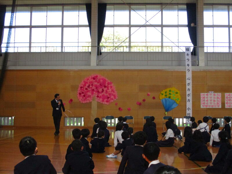最後に、担任の先生の発表です。・・・子供たちの笑顔があふれ、やる気に満ちた式となりました。