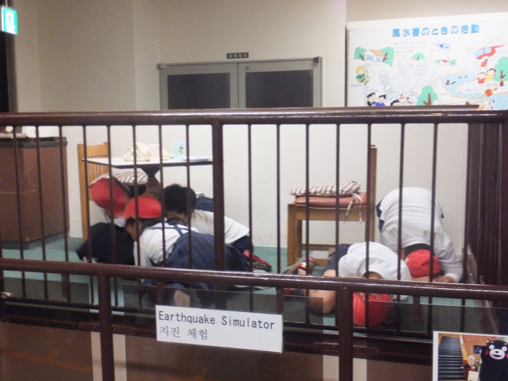 3年生は、熊本県博物館ネットワークセンターで、水くみ・洗濯板を使った洗濯・火のし体験をしました。昔の人たちの苦労と知恵の一端を学びました。その後、熊本城の天守閣に上って、熊本市街の景色を堪能しました。最後に、広域防災センターで、火災や地震の体験をして、避難の仕方を学習しました。たくさんのことを学んだ1日でした。