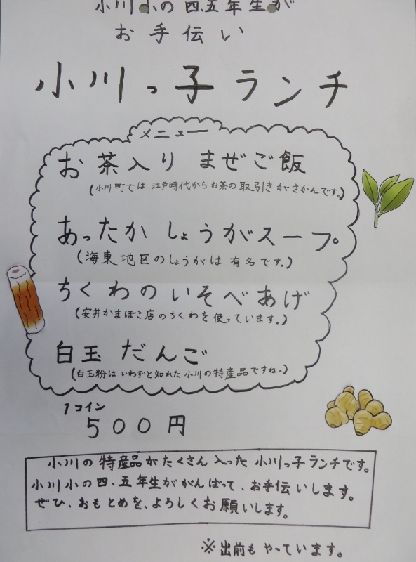 初市の季節がやってきました。今年も、5年生は、塩屋さんで小川っ子ランチの販売を行います。今年のメニューは・・・