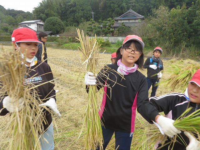 6月28日に田植えをしたもち米が収穫の時をむかえ、稲刈りを行いました。