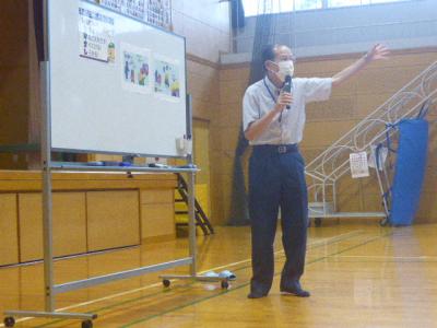 夏休み前に、不審者避難訓練を実施しました。昨年はリモートで行いましたが、今年は体育館で行いました。