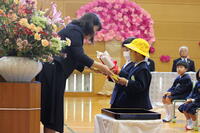 教科書は国から無償で配付されます。黄色い帽子は宇城市教育委員会から、ランドセルカバーは宇城地区交通安全協会様ならびにcoop様よりいただきました。ありがとうございました!代表でい受け取った1年生も、とても堂々とした態度で感心しました。