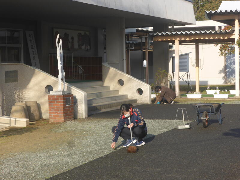 当日、晴れ間が見えた早朝、先生方が落ち葉を集めたり、音響の再確認をしたりして準備を進めました。