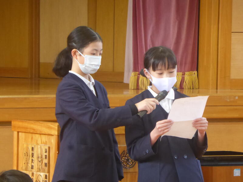 1年間を振り返り、がんばったことや成長したこと、次の学年でがんばりたいことを発表しました。