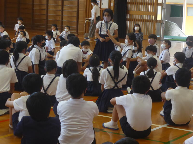 全校みんなで児童会スローガンを達成しようという思いを高める場として、今年から児童総会の時間を設定しました。