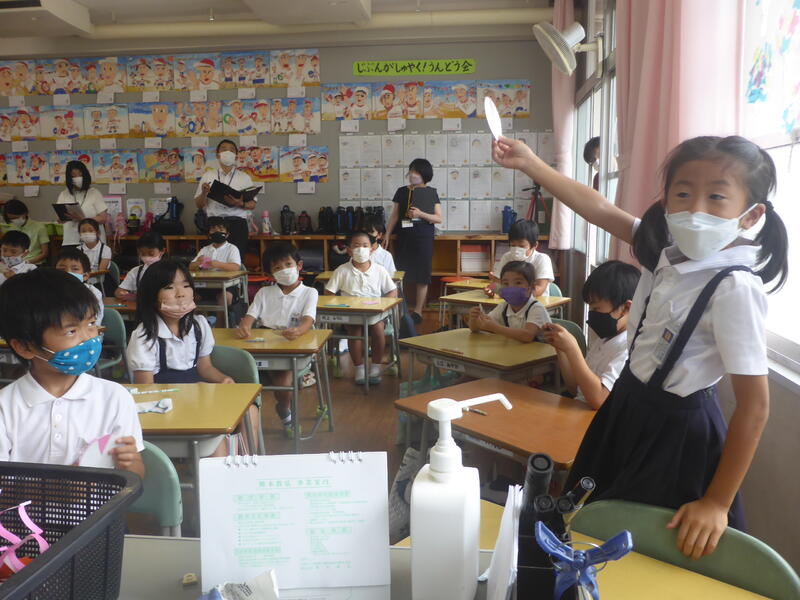 星に願いを。「○○がほしい」だけでなく、「コロナがなくなりますように」と書く1年生もいました。