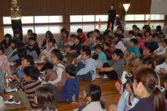 18日は2回の公演を実施。1回目は人権フェスティバル上映用の撮影を兼ねて、2校時に1~5年生の前で上演。2回目はその日の午後5時30分より6年生保護者・一般向けに上演しました。