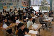 はじめに、学校長より「何よりもいのちを大切にする」冬休みを過ごしてほしいという願いが伝えられました。また年末年始には親しき仲だからこそ、襟を正して「よいおとしをおむかえください」、「あけましておめでとうございます」、「ことしもどうぞよろしくおねがいいたします」のあいさつを実践する大切さが伝えられました。