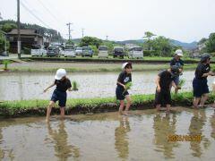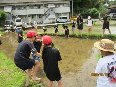 28日(水)に田植え体験を行いました。田植え体験がない子どもたちも多く、ハラハラドキドキでの体験となりました。5年生では社会科で農業を学習します。今回の田植えで、苗を育て、苗を植えるばっかりの水田を準備してくれた農家の方々(ゲストティーチャー)に指導してもらった子どもたち。感謝でいっぱいでした。