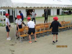5月24日はあいにくの雨。一日まっての運動会実施となりました。早朝から、グラウンド整備、テント設営等・・・、高学年の子どもたちが行うことはもちろん保護者のみなさんにも手伝ってもらいました。後は雨が降らいないことを祈るばかりです。子どもたち、ここまで本当に一生懸命に練習してきました。ここまでの姿だけでも、運動会は大成功です。みんなで創り上げた会場が主役を待っています。