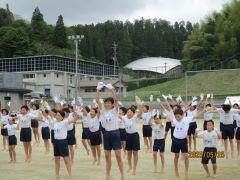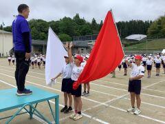 今年の運動会スローガンは「翔け 勝利への道へ ~最後まで全力で心を燃やす小国っ子~」です。「翔け」は「はばたけ」と読ませています。大谷選手のCMを参考にしたものです。「はばたけ」とは読みませんが、大谷選手の全力で活躍する姿に憧れて「翔 はばたけ」を使っています。子どもたちが、最後の1秒まで成長し続けるそんな日であってほしいと思いました。