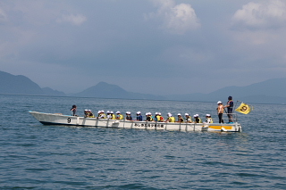5年臨海学習2日目 投稿日時 : 2017/07/04 学校サイト管理者 5年生の臨海学習2日目は、1日好天に恵まれ、午前はマリン活動のペーロン船でした。学級毎にペーロン船を漕ぎ、みんなの力を合わせると大きな船も動かせることを実感しました。 午後も強い日差しの中海水浴を満喫しました。 夜の活動では、青少年の家の周りを班ごとに歩く、ナイトウォークを楽しみました。笑い声や大きな声を芦北の海に時々響かせていました。 子どもたちは元気に、盛りだくさんの活動を楽しむことができました。