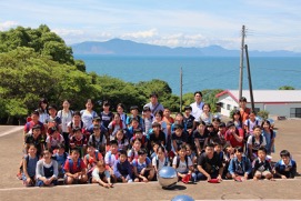 5年生臨海学習1日目(2) 投稿日時 : 2017/07/02 学校サイト管理者 県環境センターの展示コーナーを見学中いいお天気に恵まれ、水俣の海をバックに記念撮影あしきた青少年の家で開所式で誓いのことば