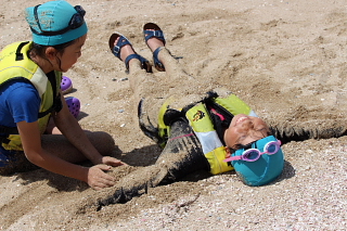 5年臨海学習2日目 投稿日時 : 2017/07/04 学校サイト管理者 5年生の臨海学習2日目は、1日好天に恵まれ、午前はマリン活動のペーロン船でした。学級毎にペーロン船を漕ぎ、みんなの力を合わせると大きな船も動かせることを実感しました。 午後も強い日差しの中海水浴を満喫しました。 夜の活動では、青少年の家の周りを班ごとに歩く、ナイトウォークを楽しみました。笑い声や大きな声を芦北の海に時々響かせていました。 子どもたちは元気に、盛りだくさんの活動を楽しむことができました。