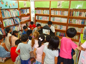 中学生による読み聞かせ(紙芝居) 投稿日時 : 2017/07/10 学校サイト管理者 カテゴリ:今日の出来事 今日、7月10日、月曜日中学生が、『かけはし』を渡って、本の読み聞かせにきてくれました。大人気でしたよ!! ありがとう!!