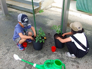 2年生・・・生活科の授業でミニトマトの苗植え 投稿日時 : 2018/05/02 学校サイト管理者 カテゴリ:今日の出来事 2年生は、生活科の授業でミニトマトの苗植えをしていました。ていねいに、ていねいに・・・・・