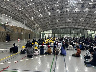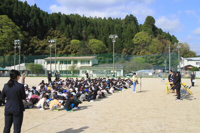 1・2年生に合わせて、わかりやすい言葉や面白い動きを入れて