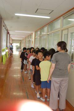 子どもたちは、認知症の人を見かけた時の接し方について、「まずは見守る」、「余裕をもって対応する」、「声をかけるときは、一人で」、「後ろから声をかけない」、「相手に目線を合わせて、やさしい口調で」、「おだやかに、はっきりと」、「相手のことばに耳をかたむけて、ゆっくり対応する」等の大切さを感じたようです。