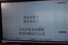 デジタル教科書を活用して自分の考えを可視化しながら、自身の考えをまとめ交流し、やなせたかしの生き方について考えを深めていきました。グループや全体の中で、たくさんの子どもたちが生き生きと伝え合っていました。