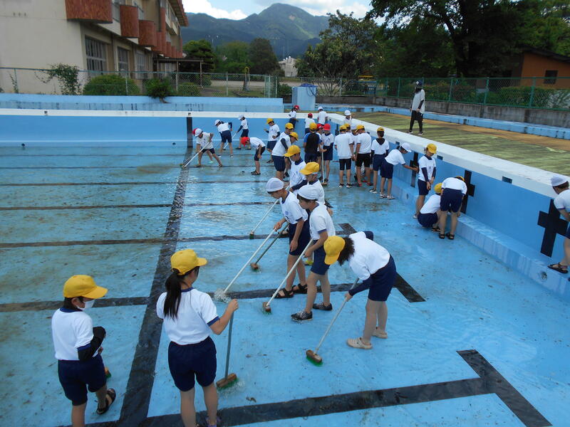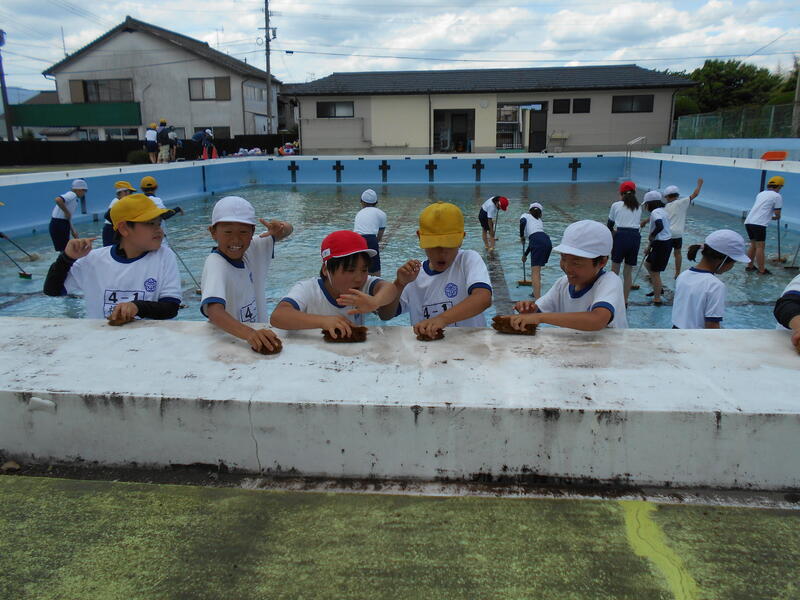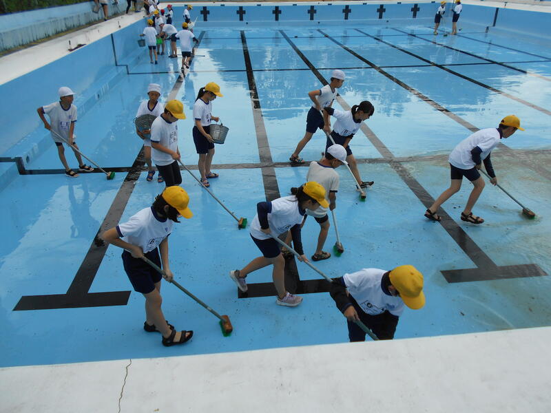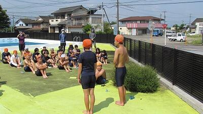 はじめに水泳学習開始の式を行い、各学年でそれぞれの内容で楽しい時間を過ごしました。