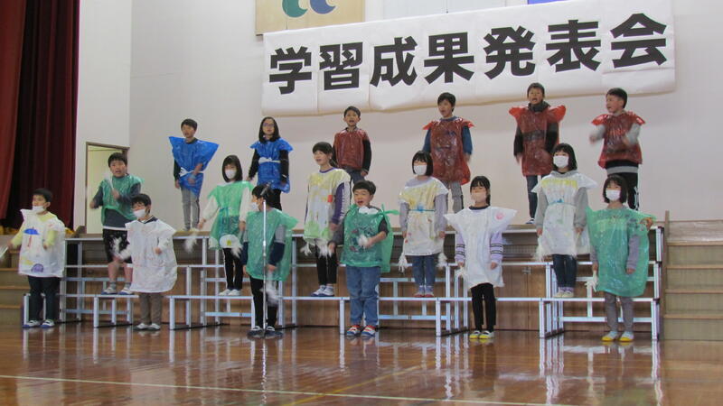 2月28日(火)、3年ぶりとなる「学習成果発表会」が本校体育館にて開催されました。なお、できるだけ蜜を避けるために、中学年・低学年・高学年の3部構成で行い、出番のない部では、児童・保護者とも、教室等でリモート鑑賞をしました。限られた環境での実施でしたが、保護者のあたたかいまなざしの中、児童は頑張ってきた練習の成果を十分に発揮することができました。