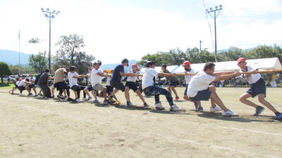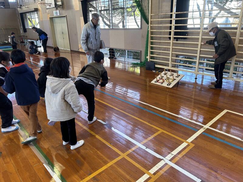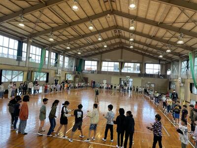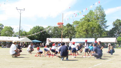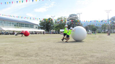 「縦割り班」対抗で競い合いました。ボールを使ったゲームでは、ルールを守る大切さも学びました。