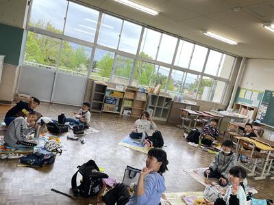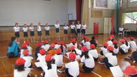1年生から6年生によって編成された「縦割り班」。今年1年、様々な活動をします。一人一人、自己紹介をしました。よろしくお願いします。
