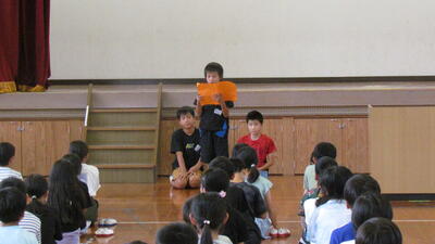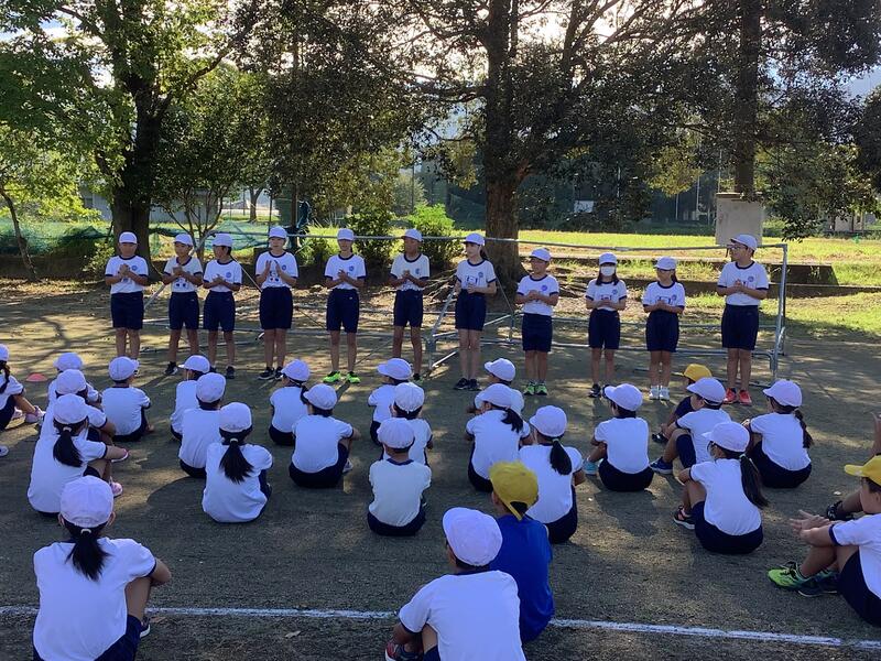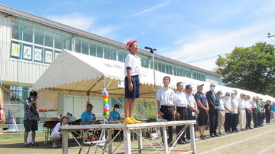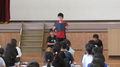 まず、2年生、4年生、6年生の代表が、夏休みの思い出と2学期に頑張りたいことを発表しました。