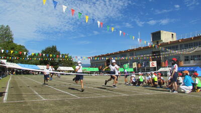 今年のスローガンは「150年目のバトンと111人の力~笑顔をつなげ~」です。スローガンのとおり、全員が全力を出し切り、笑顔をつなぐ運動会となりました。