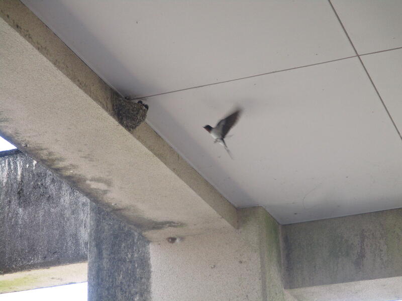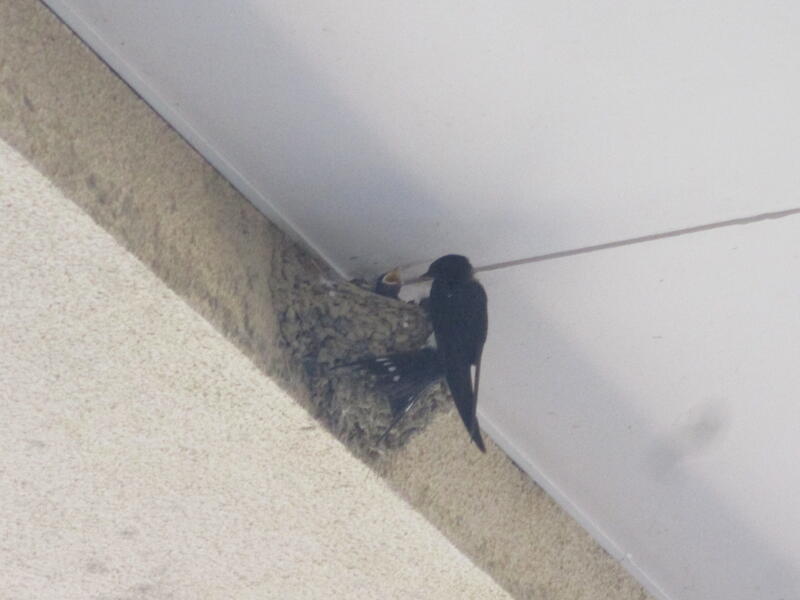 岡原小学校の軒下で、ツバメが巣をかけて、子育てを始めました。